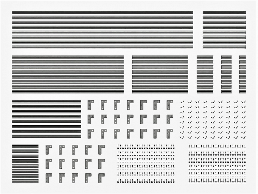 Набор состоит из алюминиевого профиля разной длины и крепежа, что позволяет создавать различные конструкции. Набор легко собирать и разбирать, поэтому заменить часть конструкции или полностью переделать ее не составит большого труда. Набор подойдет как для новичков, так и для опытных инженеров. Покупка набора выгодней на 10%.
