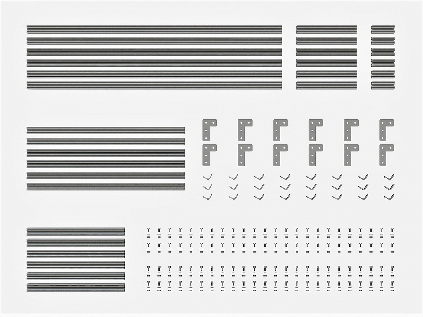Набор состоит из алюминиевого профиля разной длины и крепежа, что позволяет создавать различные конструкции. Набор легко собирать и разбирать, поэтому заменить часть конструкции или полностью переделать ее не составит большого труда. Набор подойдет как для новичков, так и для опытных инженеров. Покупка набора выгодней на 10%.