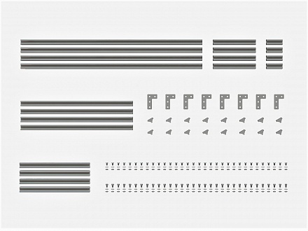Набор состоит из алюминиевого профиля разной длины и крепежа, что позволяет создавать различные конструкции. Набор легко собирать и разбирать, поэтому заменить часть конструкции или полностью переделать ее не составит большого труда. Набор подойдет как для новичков, так и для опытных инженеров. Покупка набора выгодней на 5%.