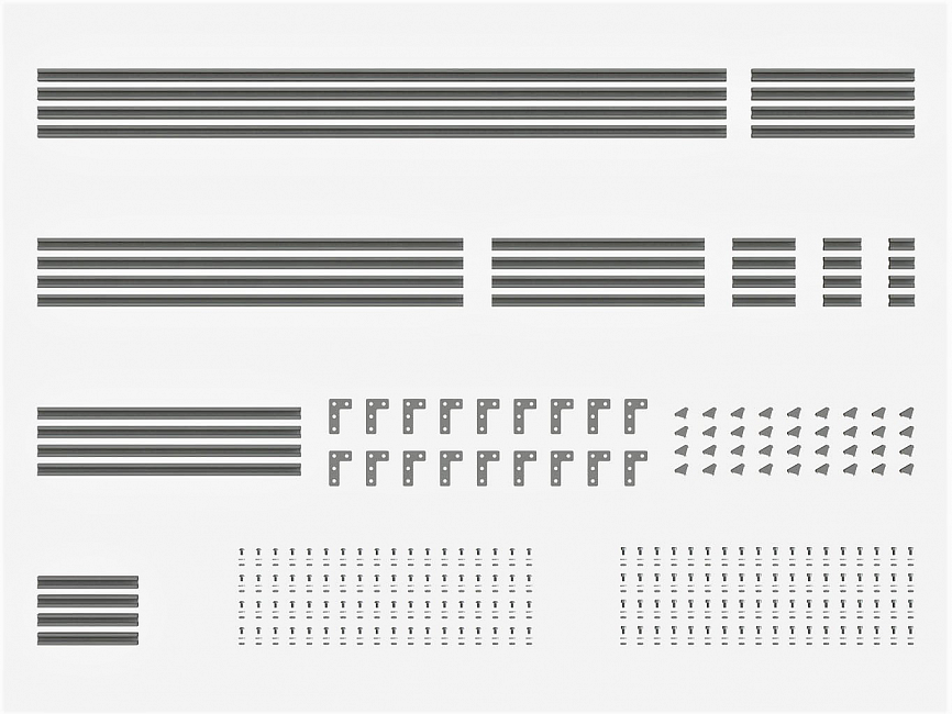 Набор состоит из алюминиевого профиля разной длины и крепежа, что позволяет создавать различные конструкции. Набор легко собирать и разбирать, поэтому заменить часть конструкции или полностью переделать ее не составит большого труда. Набор подойдет как для новичков, так и для опытных инженеров. Покупка набора выгодней на 5%.