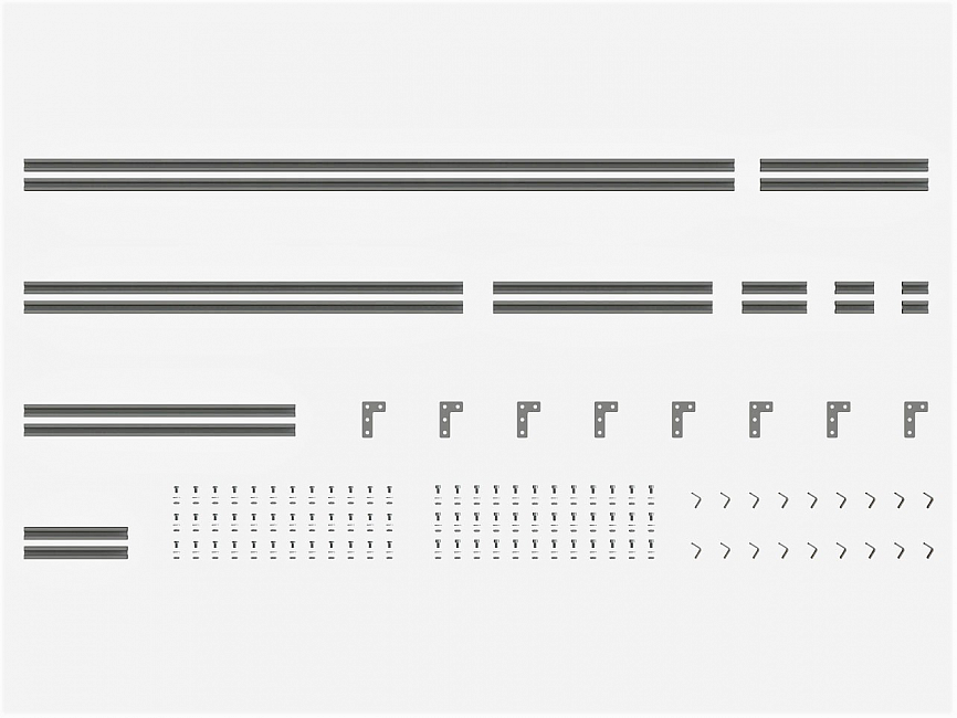 Набор состоит из алюминиевого профиля разной длины и крепежа, что позволяет создавать различные конструкции. Набор легко собирать и разбирать, поэтому заменить часть конструкции или полностью переделать ее не составит большого труда. Набор подойдет как для новичков, так и для опытных инженеров. Покупка набора выгодней на 5%.