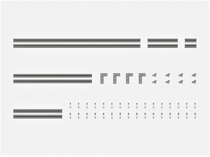 Набор состоит из алюминиевого профиля разной длины и крепежа, что позволяет создавать различные конструкции. Набор легко собирать и разбирать, поэтому заменить часть конструкции или полностью переделать ее не составит большого труда. Набор подойдет как для новичков, так и для опытных инженеров. Покупка набора выгодней на 5%.