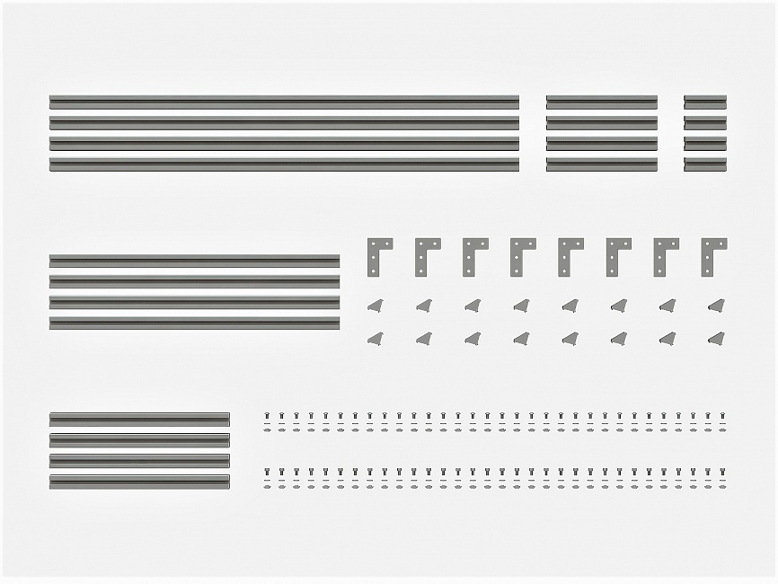 Набор состоит из алюминиевого профиля разной длины и крепежа, что позволяет создавать различные конструкции. Набор легко собирать и разбирать, поэтому заменить часть конструкции или полностью переделать ее не составит большого труда. Набор подойдет как для новичков, так и для опытных инженеров. Покупка набора выгодней на 5%.