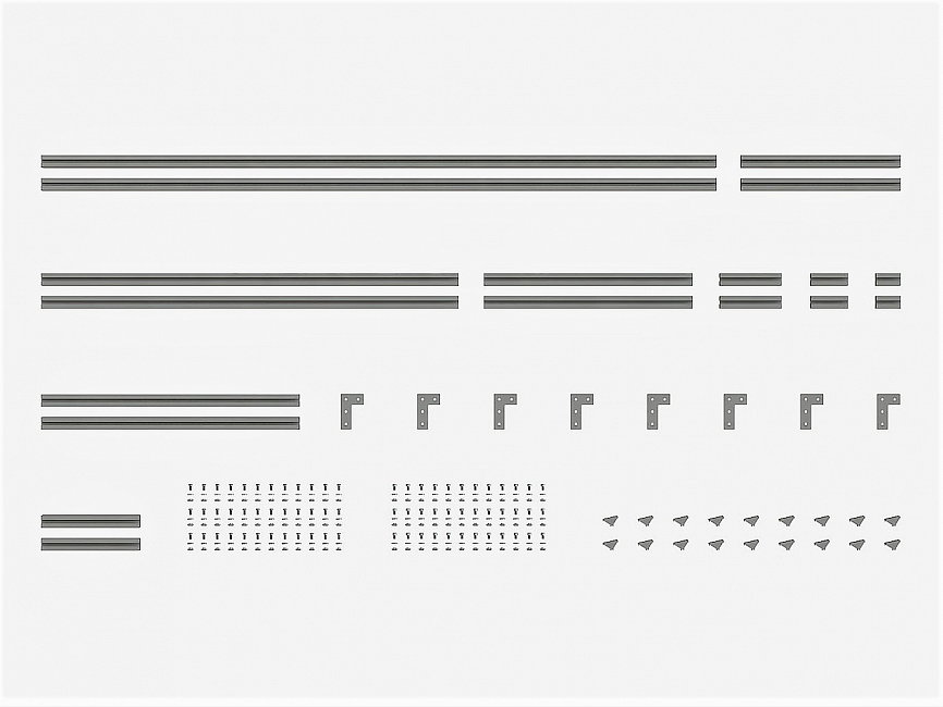 Набор состоит из алюминиевого профиля разной длины и крепежа, что позволяет создавать различные конструкции. Набор легко собирать и разбирать, поэтому заменить часть конструкции или полностью переделать ее не составит большого труда. Набор подойдет как для новичков, так и для опытных инженеров. Покупка набора выгодней на 5%.