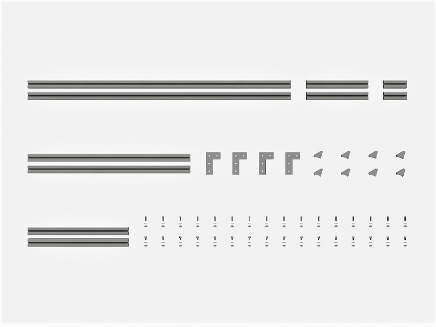 Набор состоит из алюминиевого профиля разной длины и крепежа, что позволяет создавать различные конструкции. Набор легко собирать и разбирать, поэтому заменить часть конструкции или полностью переделать ее не составит большого труда. Набор подойдет как для новичков, так и для опытных инженеров. Покупка набора выгодней на 5%.