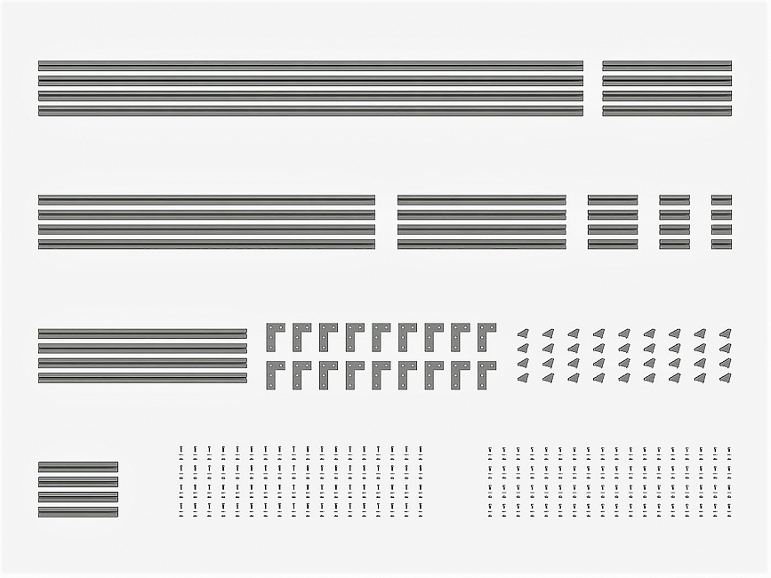Набор состоит из алюминиевого профиля разной длины и крепежа, что позволяет создавать различные конструкции. Набор легко собирать и разбирать, поэтому заменить часть конструкции или полностью переделать ее не составит большого труда. Набор подойдет как для новичков, так и для опытных инженеров. Покупка набора выгодней на 5%.