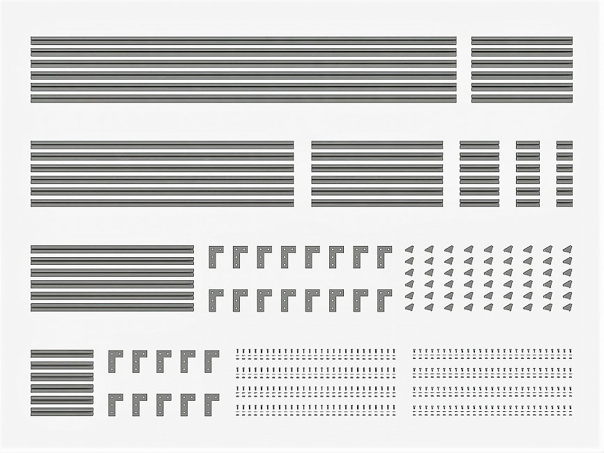 Набор состоит из алюминиевого профиля разной длины и крепежа, что позволяет создавать различные конструкции. Набор легко собирать и разбирать, поэтому заменить часть конструкции или полностью переделать ее не составит большого труда. Набор подойдет как для новичков, так и для опытных инженеров. Покупка набора выгодней на 10%.