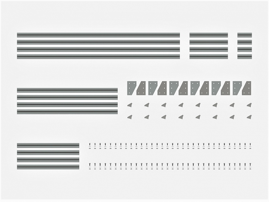 Набор состоит из алюминиевого профиля разной длины и крепежа, что позволяет создавать различные конструкции. Набор легко собирать и разбирать, поэтому заменить часть конструкции или полностью переделать ее не составит большого труда. Набор подойдет как для новичков, так и для опытных инженеров. Покупка набора выгодней на 5%.