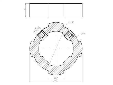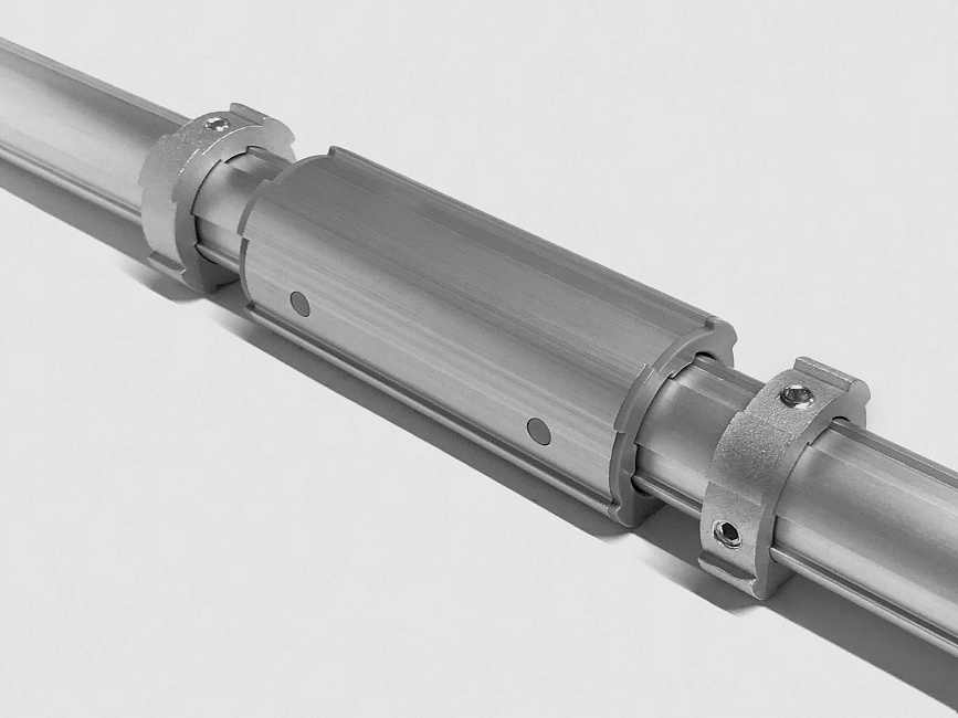 Скользящий адаптер для трубного профиля Ф28 позволяет элементам свободно перемещаться по профилю, обеспечивая гибкость и возможность регулировки в конструкции.