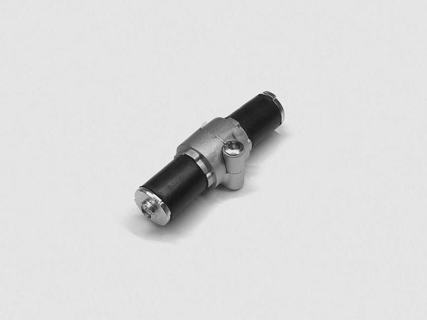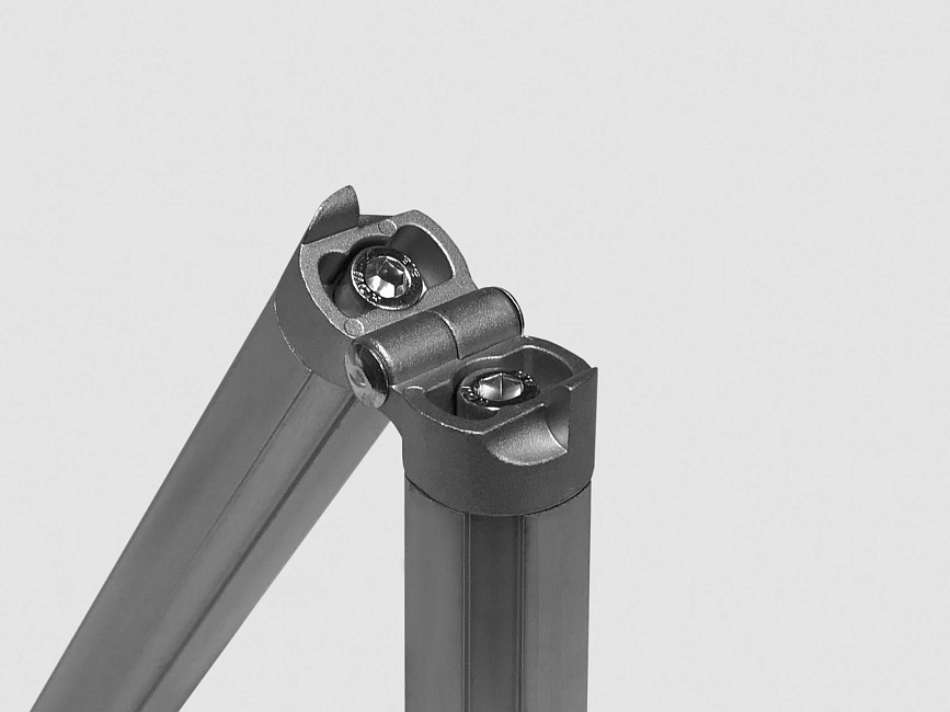 Шарнирный соединитель для труб Ф28 позволяет осуществлять поворот на угол от 0 до 180 градусов, обеспечивая гибкость и подвижность в создании конструкций.