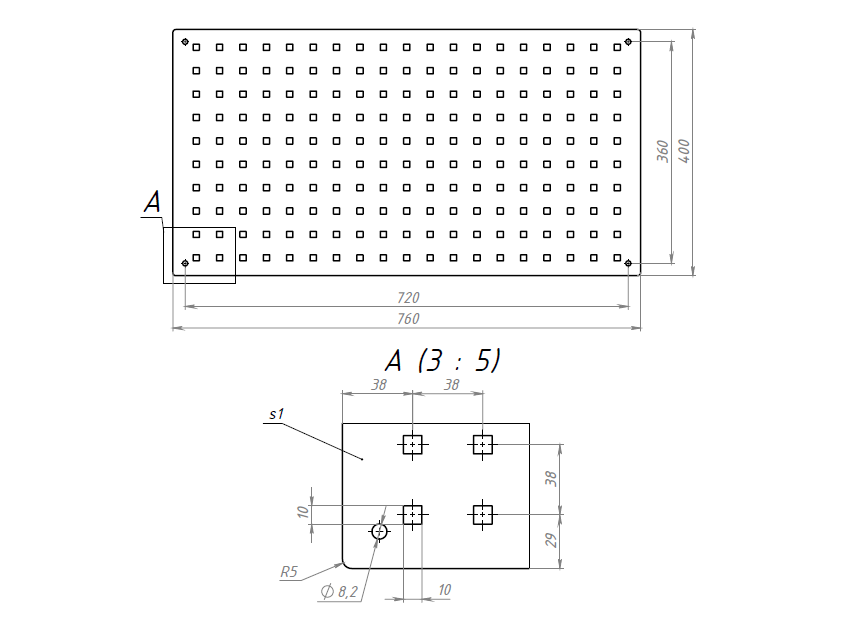 Металлическая перфопанель 760х400мм, P003 Арт. P003