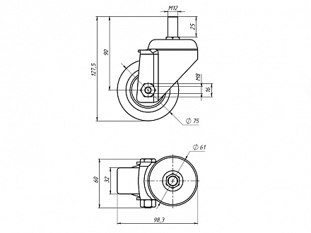 Колесо без тормоза Ø75 М12х25, A311 Арт. A311