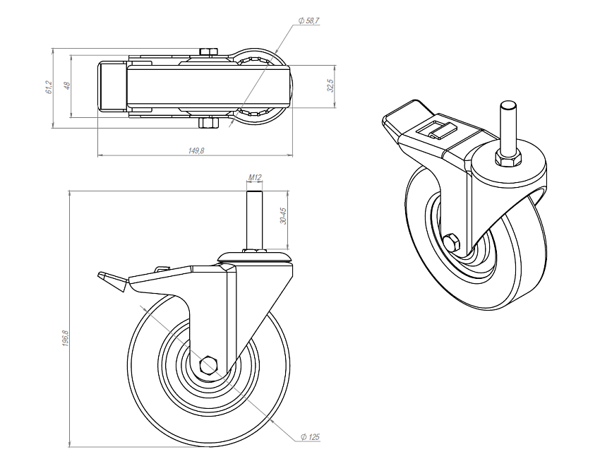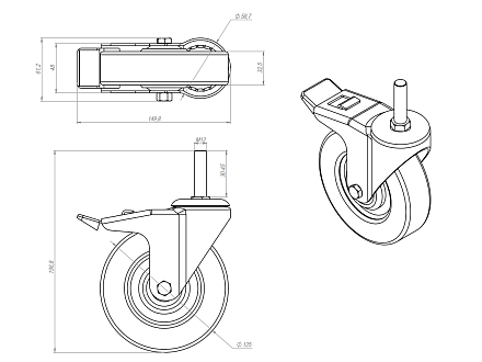 Колесо с тормозом Ø125 М12х45, A326 Арт. A326