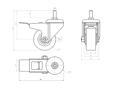Колесо с тормозом Ø75 М10х25, A315 Арт. A315