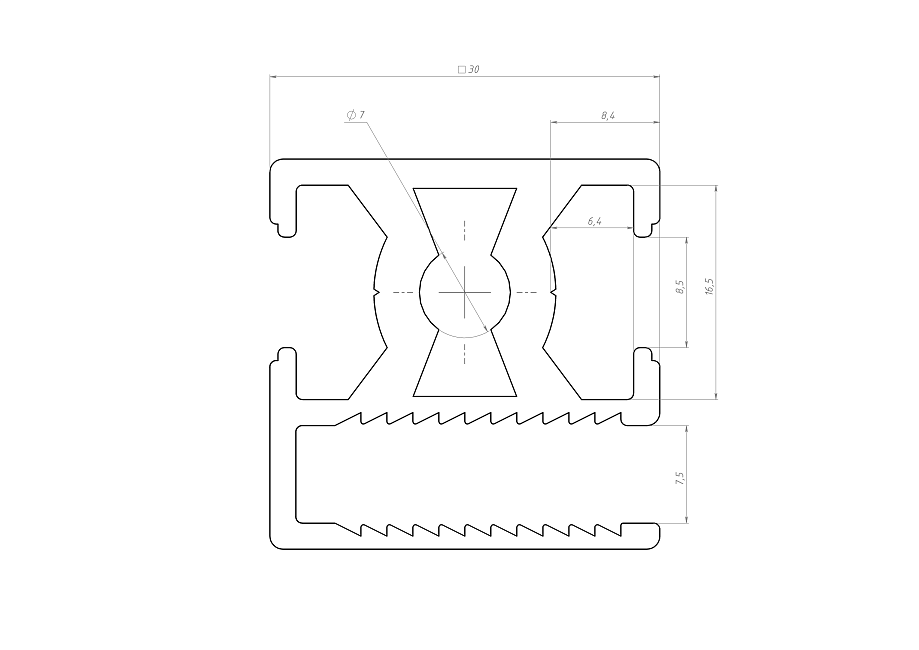 Алюминиевый профиль с размерами 30×30 мм, предназначенный для изготовления лёгких конструкций, включая перегородки. Анодированное покрытие придаёт профилю привлекательный внешний вид и повышает стойкость к коррозии. Специальная форма F-конструкции обеспечивает лёгкое вставление стекол, пластиков и листов другого типа толщиной от 4 до 6 мм. Идеально подходит для самостоятельного строительства и ремонта помещений любого назначения.
