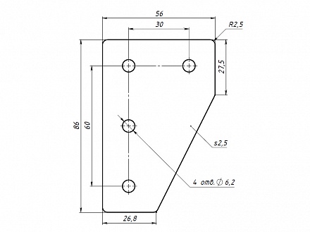Г-соединитель 60х90B предназначен для Г-соединения алюминиевых конструкционных профилей серии 30 под углом 90 градусов.