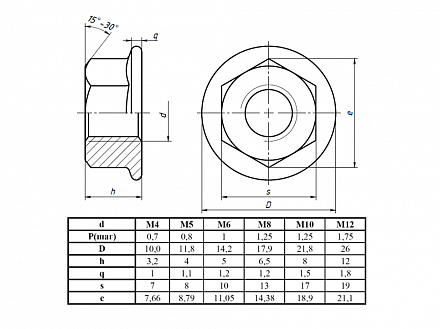 Гайка шестигранная с фланцем М4 DIN 6923, K53 Арт. K53