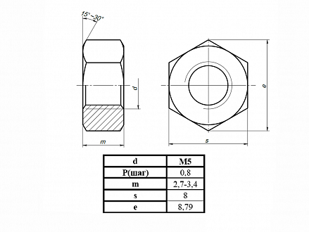 Гайка М5, низкая DIN 439, K32 Арт. K32