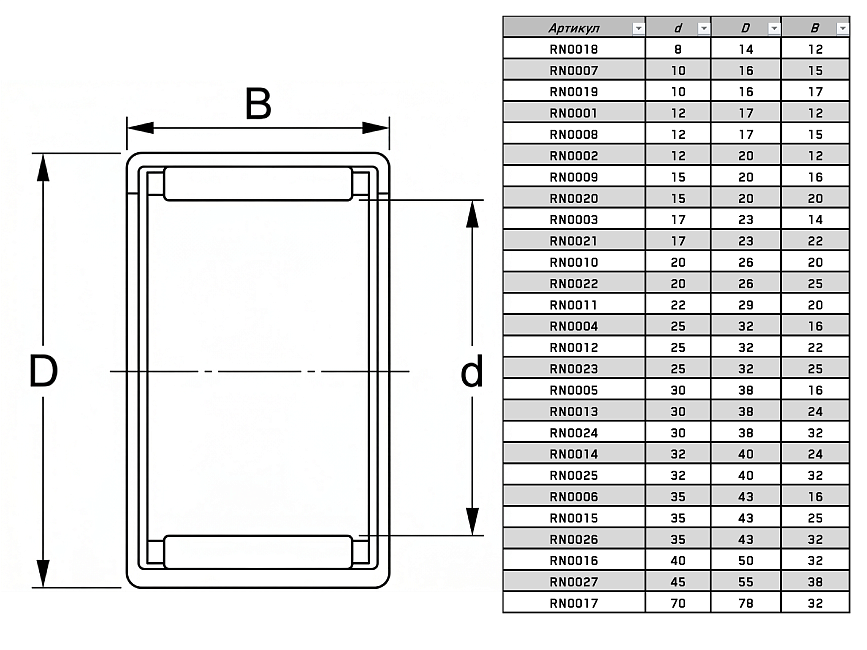 | Тип тел качения: | игольчатый ролик |