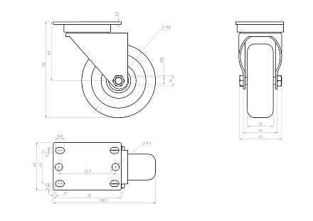 Колесо Ф100 мм с платформой без тормоза, B358 Арт. B358
