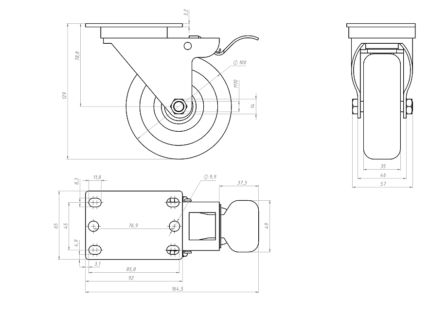Колесо Ф100 мм с платформой с тормозом, B360 Арт. B360