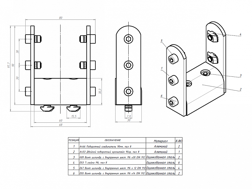 - Двойной поворотный кронштейн 90гр, паз 8, A453 — 1 шт