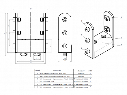 Комплект кронштейна 30х60 90гр с соединителем, в паз профиля Арт. #043