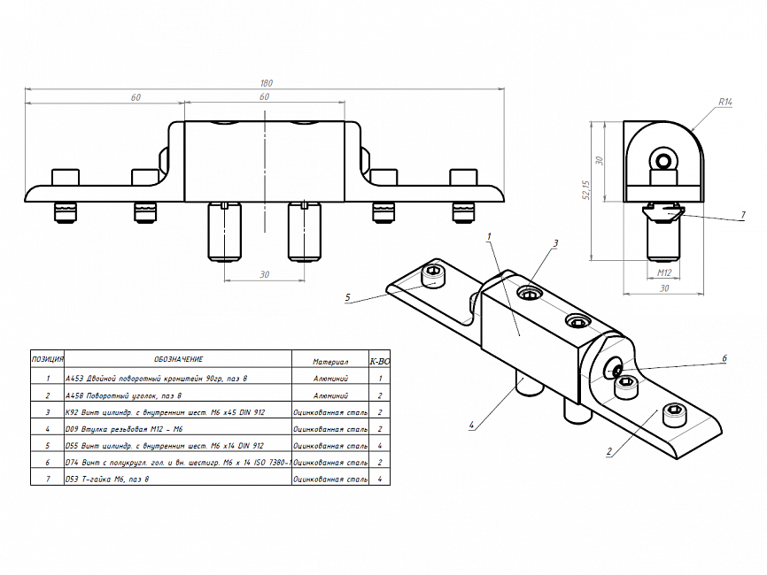 - Двойной поворотный кронштейн 90гр, паз 8, A453 — 1 шт