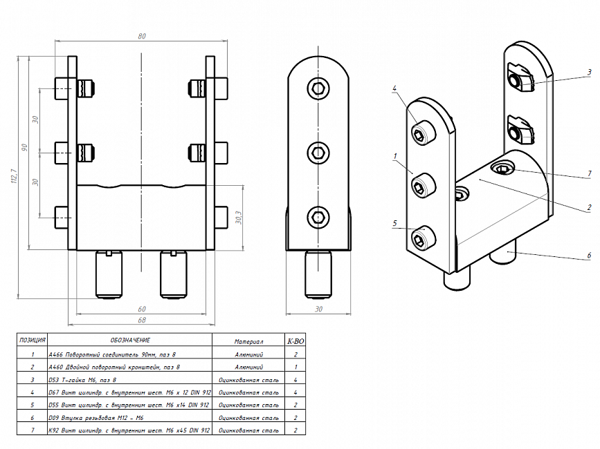 - Двойной поворотный кронштейн, паз 8, A460 — 1 шт