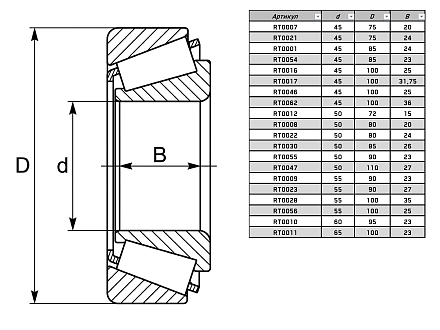 Подшипник 7511 А FBC ( 32211 A ) 55х100х25, RT0056 Арт. RT0056