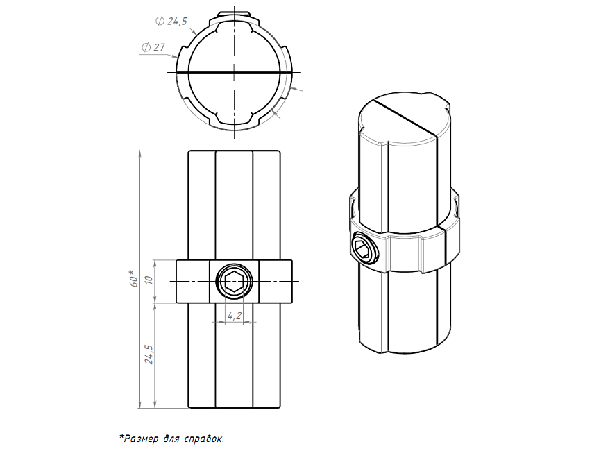 Внутренний линейный соединитель для трубных профилей Ф28 обеспечивает прямое и прочное соединение двух труб, создавая линейные элементы в конструкции.
