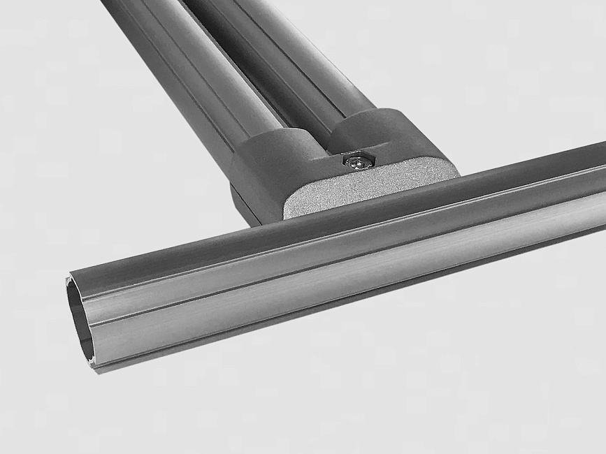 Т-соединитель под углом 90 градусов предназначен для соединения двух трубных профилей Ф28 в конструкции, обеспечивая прочность и удобство в установке.