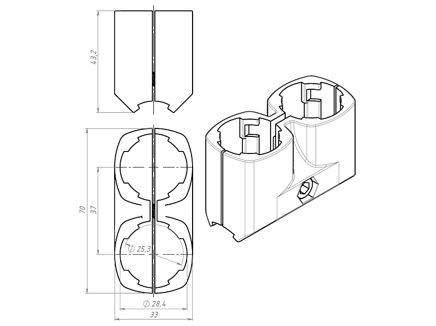 Т-соединитель под 90гр для двойного профиля Ф28, B389 Арт. B389