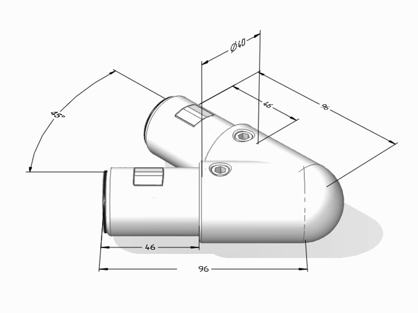 V-коннектор, V50, предназначен для соединения двух трубчатых профилей под углом 45 градусов в одной плоскости.