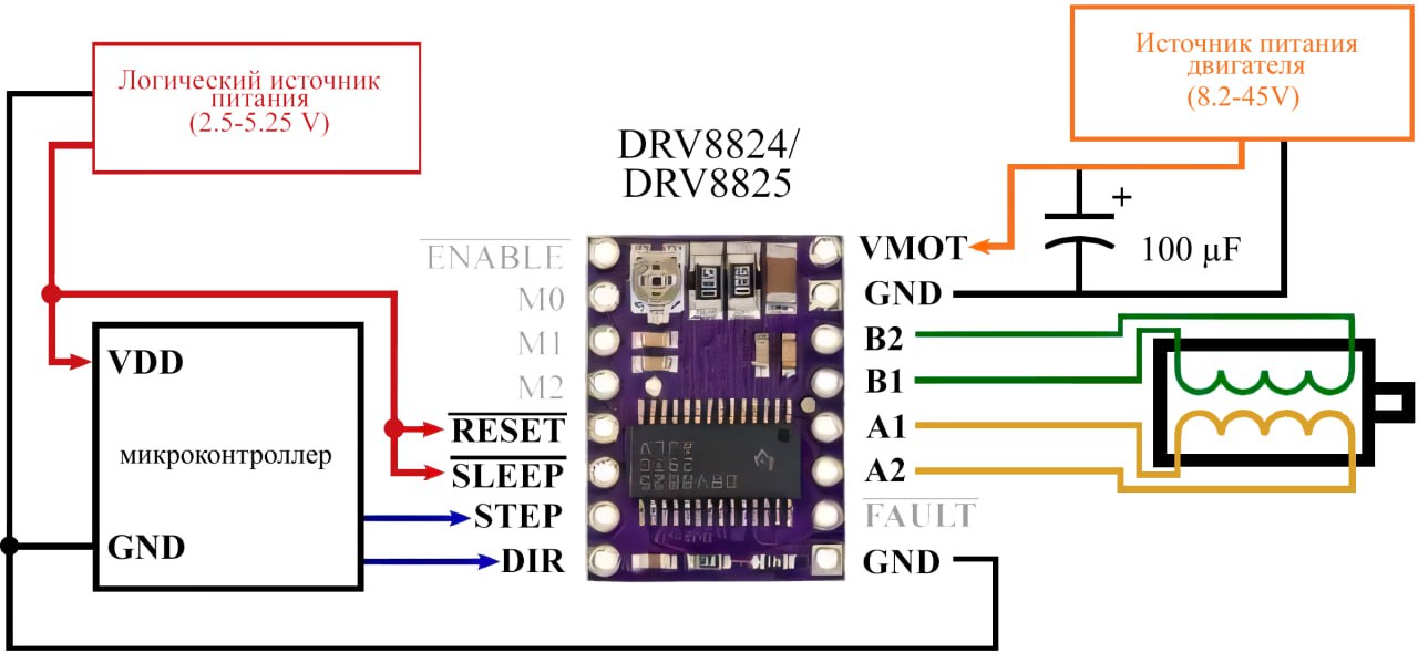 Эта плата разводки для драйвера шагового двигателя DRV8825 с микрошаговым биполярным управлением оснащена регулируемым ограничением тока, защитой от перегрузки по току и перегрева, а также шестью разрешениями микрошага (до 1/32 шага). Он работает от 8,2 В до 45 В и может выдавать до примерно 1,5 А на фазу без радиатора или принудительного воздушного потока (рассчитан на 2,2 А на обмотку при достаточном дополнительном охлаждении).