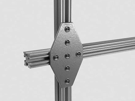 Х-соединитель 45x55 предназначен для крестообразного соединения алюминиевых конструкционных профилей серии 15 под углом 90 градусов.