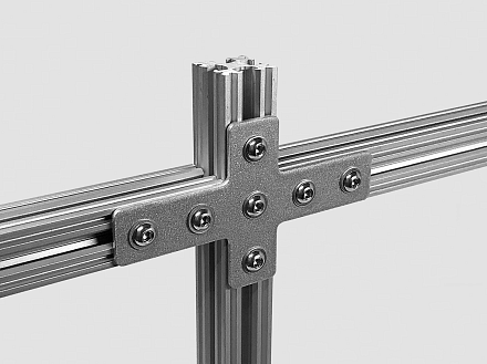 Х-соединитель 45х55В предназначен для крестообразного соединения алюминиевых конструкционных профилей серии 15 под углом 90 градусов.