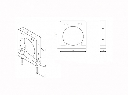 Кронштейн используется для фиксации шпинделя, с помощью передней панели на болтовом креплении зажимаются фрезера Ø 71 мм, такие как Bosch Colt или Dewalt 611