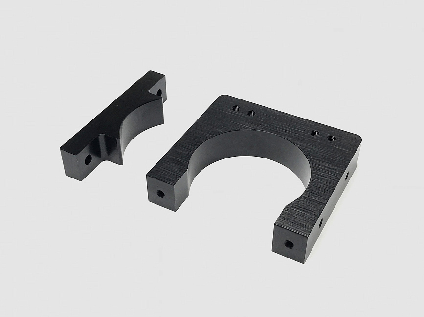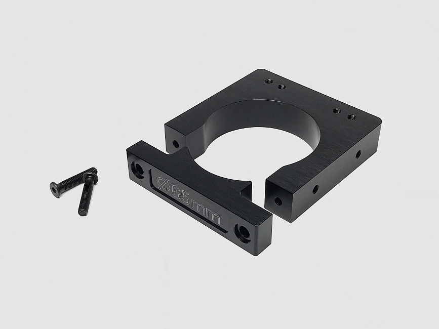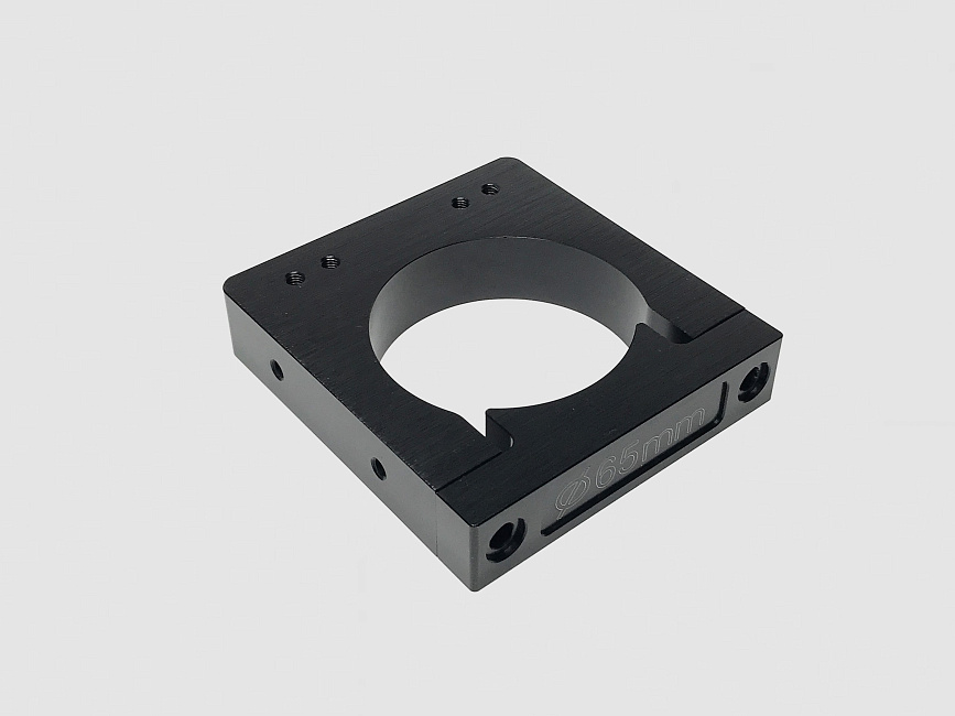 Монтажный кронштейн для фрезерных шпинделей изготовлен из алюминия с черным анодированным покрытием. Этот кронштейн специально предназначен для установки воздушного шпинделя мощностью 1,5 кВт. Конструкция включает съемную и регулируемую лицевую панель для быстрой смены инструмента и настройки положения. Кронштейн имеет зенкованные и резьбовые отверстия, что обеспечивает гибкие варианты крепления. В комплект входит хомут и два винта с плоской головкой и внутренним шестигранником M5х25.