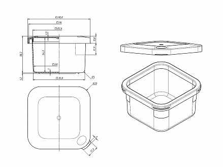 Коробка пластиковая, □99x99x59 мм, B119 Арт. B119