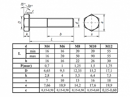 Болт с шестигранной головкой М16 х100 ГОСТ 7798-70, R47 Арт. R47