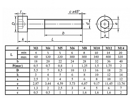 Винт цилиндр. с внутренним шест. М3х45 DIN 912, K95 Арт. K95