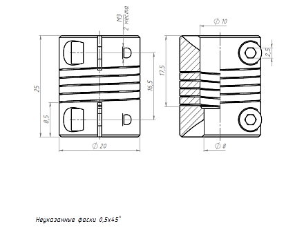 Гибкая муфта с диаметрами отверстий 8/10 мм позволяет соединять валы разных диаметров и снижать вибрацию.