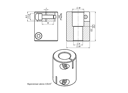 Кулачковая муфта с диаметром отверстий 8/10 миллиметров позволяет соединять валы разного размера и снижает вибрацию.