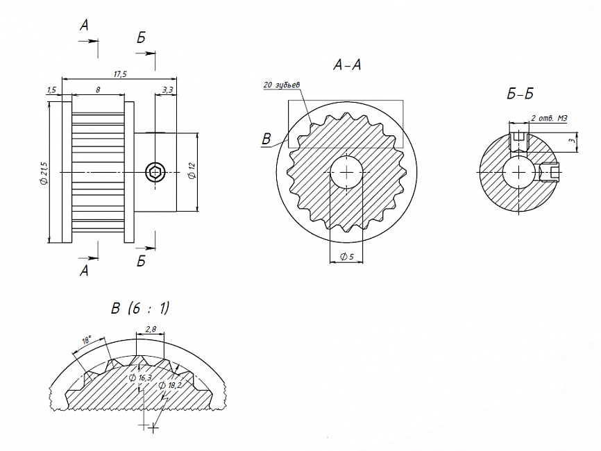 Шкив GT3 используют для создания передач с помощью зубчатых ремней. Данный шкив подходит для зубчатого ремня GT3. Фиксация осуществляется на вал диаметром 5 мм с помощью установочных винтов, которые идут в комплекте.