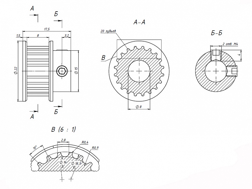 Шкив GT3 используют для создания передач с помощью зубчатых ремней. Данный шкив подходит для зубчатого ремня GT3. Фиксация осуществляется на вал диаметром 8 мм с помощью установочных винтов, которые идут в комплекте.