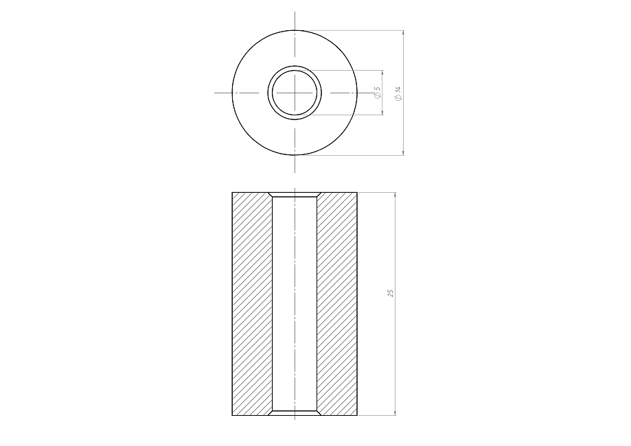 Жесткая муфта с отверстиями 5/5 мм обеспечивает жесткое соединение валов одинакового диаметра.