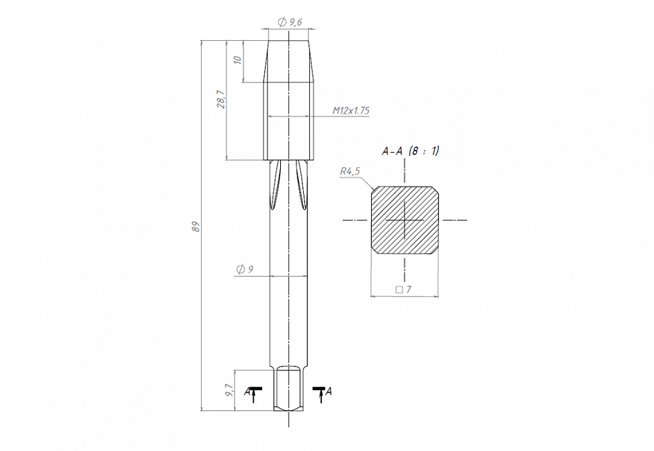 Метчик однопроходный спиральный М12, A498 Арт. A498