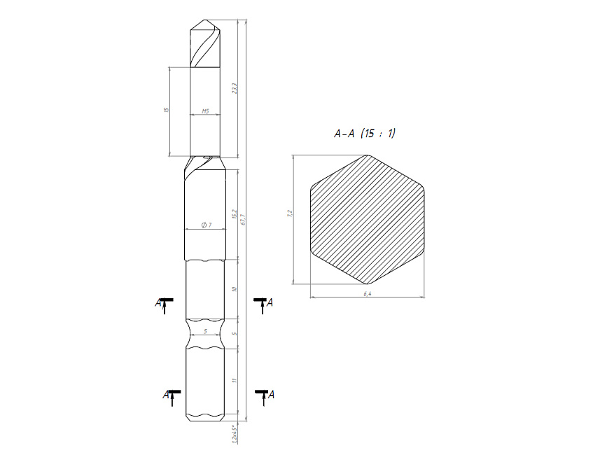 Метчик однопроходный спиральный М5 используется для нарезания сквозной внутренней резьбы на металлических заготовках. Представляет собой стержень с прорезанными стружечными канавками, которые образуют режущие кромки. Достоинством ручного метчика является возможность нарезания резьбы в деталях, уже установленных на какой-либо конструкции. Размер: М5х0,8 мм.