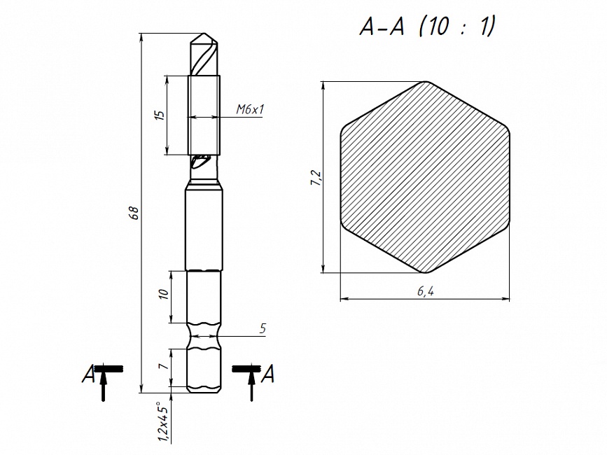 Метчик однопроходный спиральный М6, A485 Арт. A485